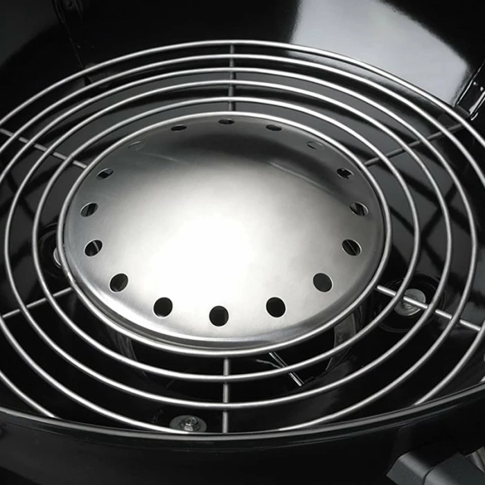 La cuve émaillée en porcelaine assure une parfaite diffusion de la chaleur. Cuisson directe ou indirecte, tous les types de cuisson sont possibles. Pour réaliser des cuissons indirectes, des paniers à charbon en inox sont livrés avec le barbecue. En fond de cuve, une grille foyère permet de protéger la cuve du contact direct avec les charbons ardents mais aussi d’assurer leur parfaite combustion grâce à l’apport d’air.