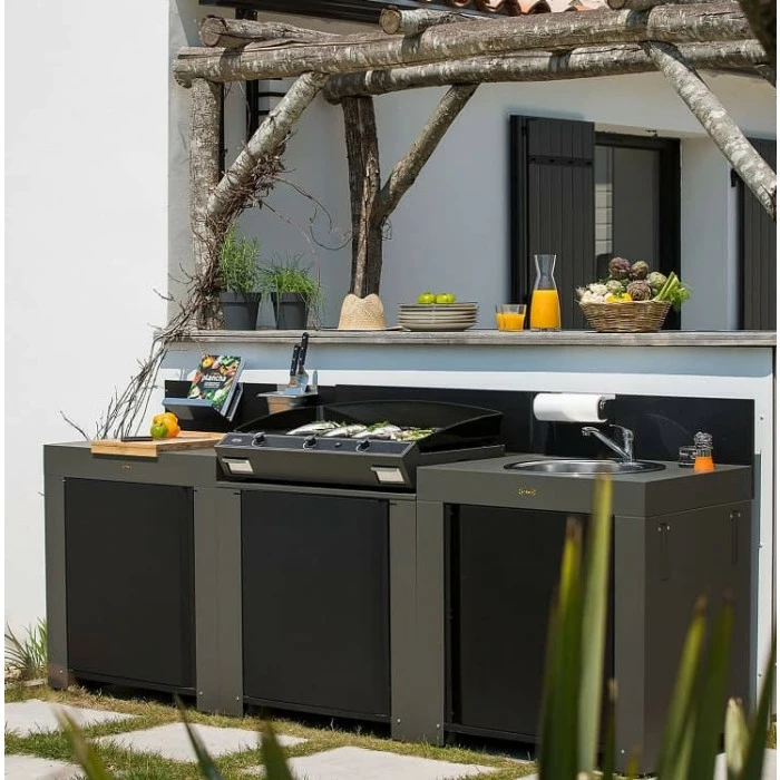 L’évier Modulo est un meuble d’appoint qui vous permettra de bénéficier d’une cuisine d’extérieur sur mesure.