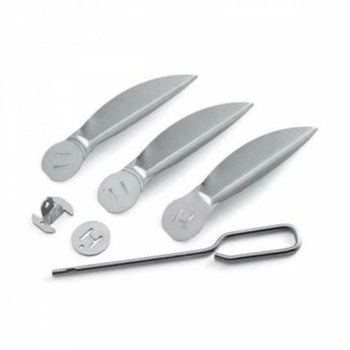 Il comprend : 3 ailettes, 1 levier de réglage des ailettes, 1 pièce d’assemblage et 1 vis.