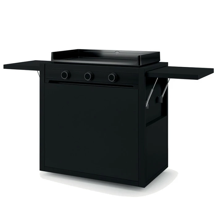 Votre plancha Modern 75 en acier à gaz, trouvera sa place sur ce chariot fermé en acier noir.